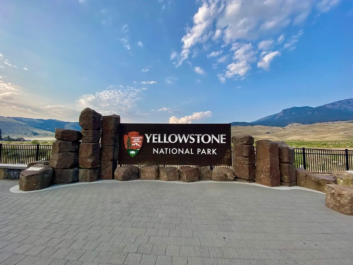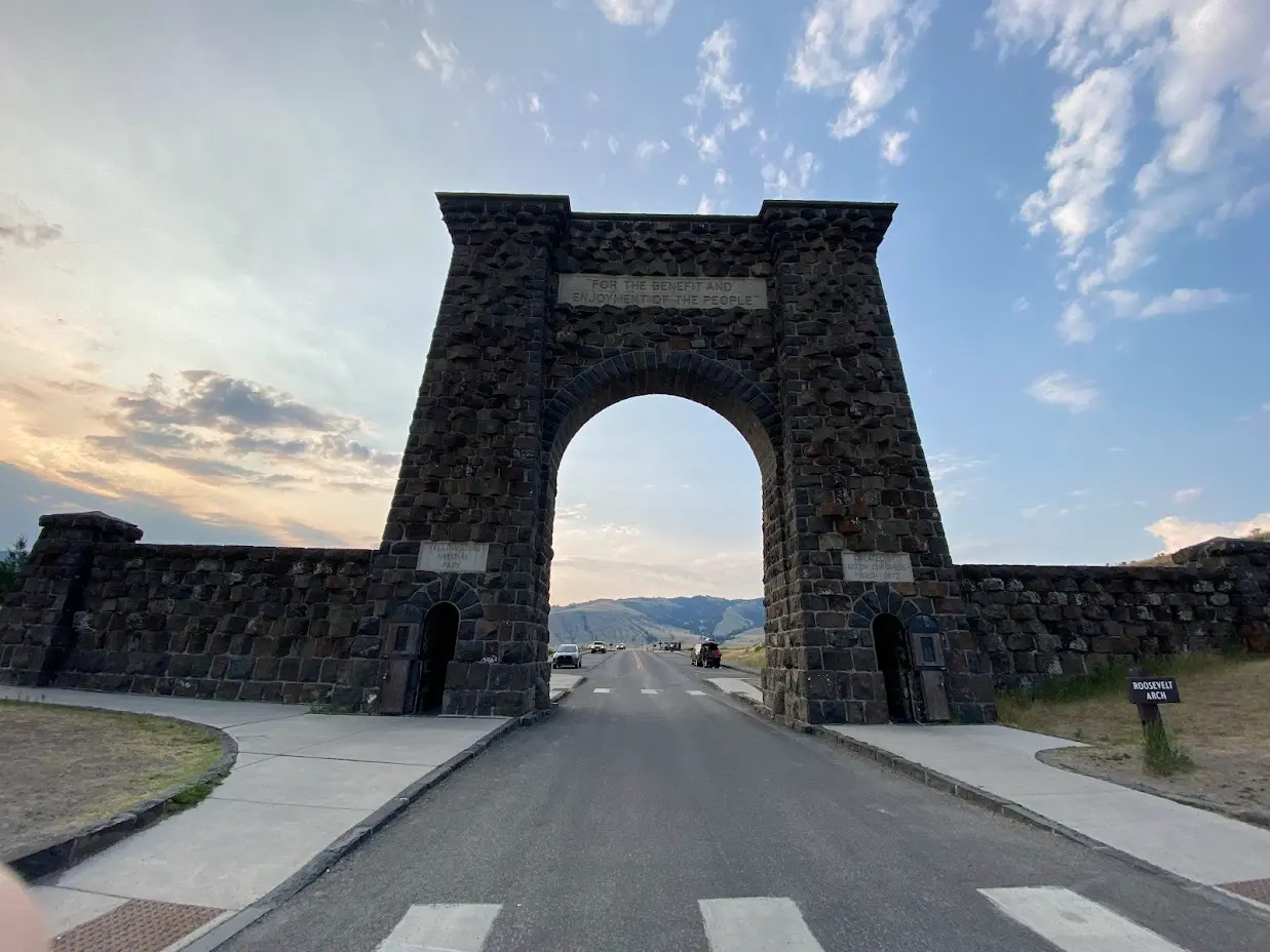- Stop at Roosevelt Arch and the Yellowstone NP sign. Right before you arrive at the arch, there is a small center with coffee, breakfast, souvenirs, and sporting goods.
