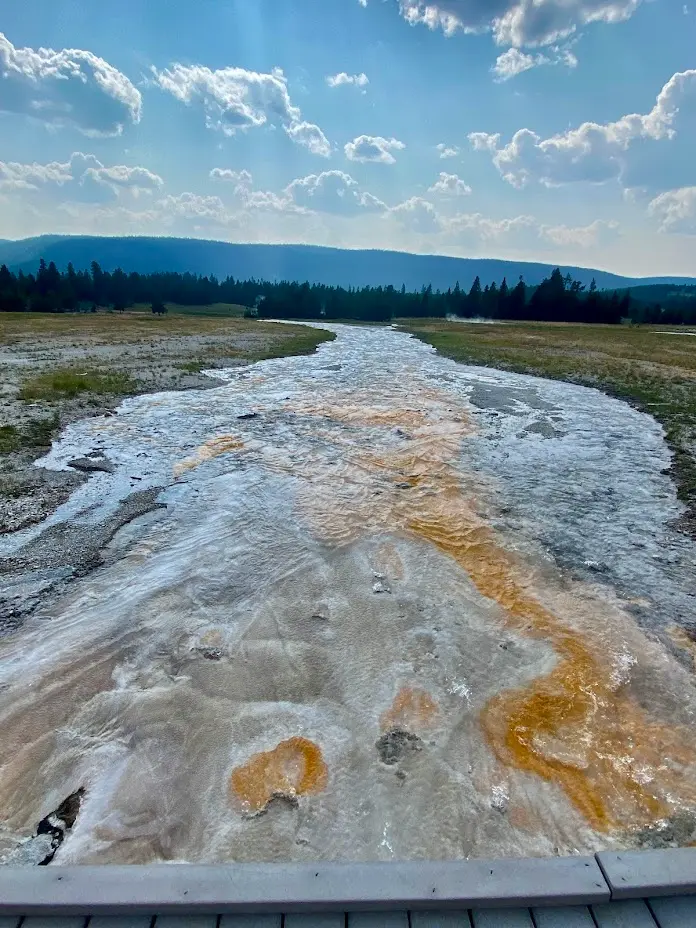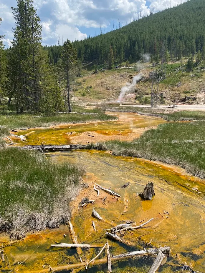 - This is a short, one-way road with pulls offs featuring hydrothermal features like Orange Spring Mound.