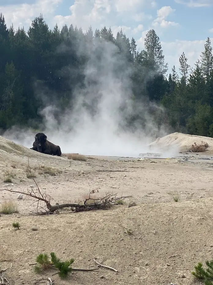 - Mud Volcano Loop (Easy, 0.8 mile). Pictured below, we saw a buffalo hanging out near Black Dragon's Cauldron. Apparently, this is a common sighting in the area!